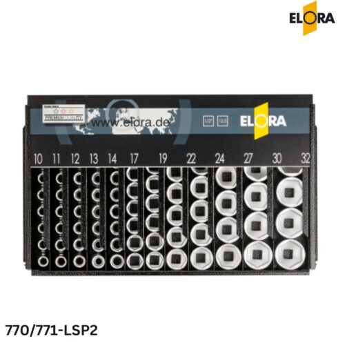 Bộ tuýp hệ mét 1/2 inch ELORA 770/771-LSP2 là lựa chọn tối ưu cho các thợ cơ khí chuyên nghiệp và ứng dụng trong ngành công nghiệp sửa chữa ô tô. Được chế tạo từ thép Chrome-Vanadium 31CrV3 / 1.2208 cao cấp, các đầu tuýp có độ bền cao, khả năng chống ăn mòn tốt và chịu lực siết lớn. Sản phẩm đi kèm giá treo thép sơn tĩnh điện giúp bảo quản dụng cụ gọn gàng và dễ dàng sử dụng.