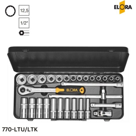 Bộ tuýp 770-LTU/LTK của Elora là bộ dụng cụ chuyên nghiệp, gồm 29 chi tiết, tích hợp cả đầu tuýp tiêu chuẩn và đầu tuýp sâu giúp mở rộng phạm vi ứng dụng.