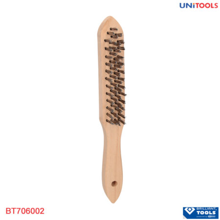 Bàn chải vệ sinh bộ kẹp phanh với dây thép trơn và tay cầm bằng gỗ thiết kế 4 hàng đặc biệt thích hợp để làm việc với các bề mặt bằng thép không gỉ (V2A) và nhôm.