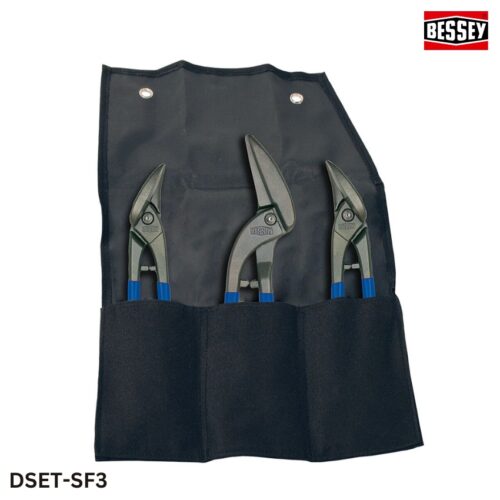 Bộ kéo cắt tôn BESSEY DSET-SF3 bao gồm ba cây kéo chuyên dụng được bố trí trong túi đựng tiện lợi, phù hợp cho các công việc cắt liên tục, cắt đường thẳng hoặc cong trên tôn mỏng và tấm kim loại. Mỗi cây kéo được thiết kế tối ưu về độ dài và hình dạng để đáp ứng đa dạng nhu cầu gia công cơ khí.