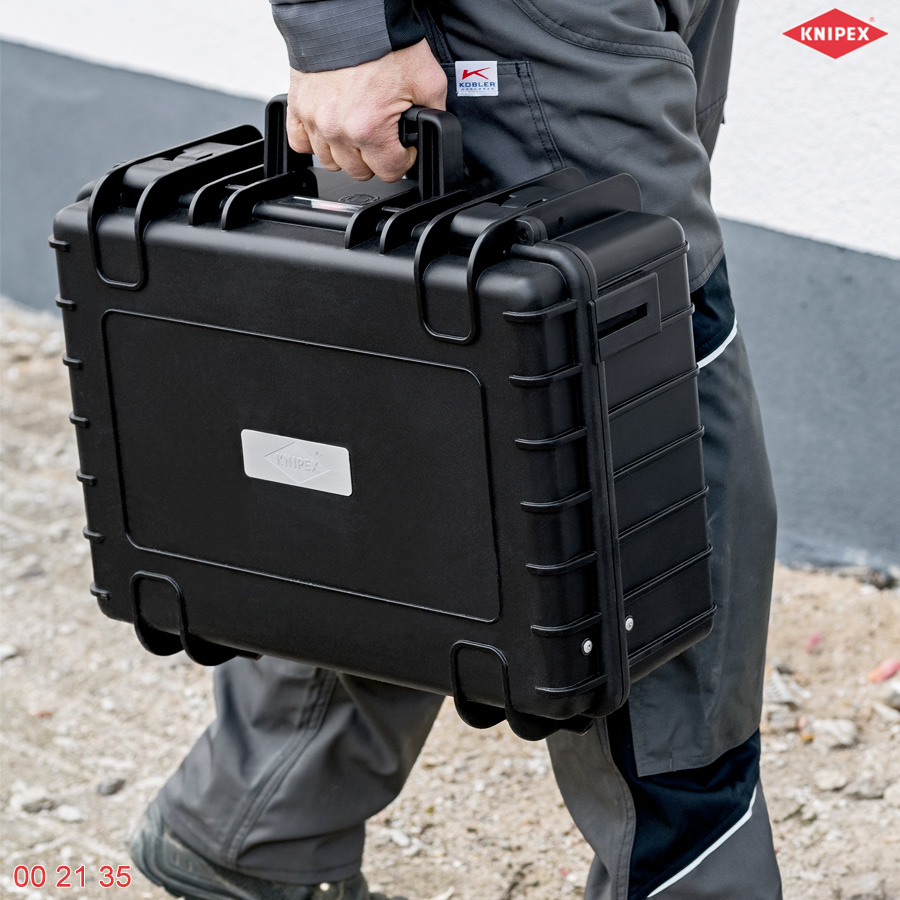 Bộ dụng cụ đồ nghề thi công điện cho ngành điện lực sửa chữa và làm tủ điện Knipex 00 21 35 đựng trong vali chống sốc, thiết kế dành riêng cho công việc lắp đặt, bảo trì và sửa chữa điện chuyên sâu tại công trường hoặc xưởng sản xuất. Made in Germany