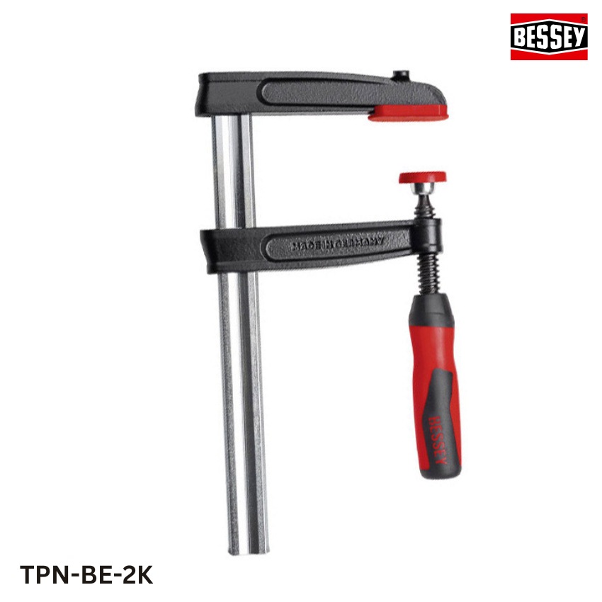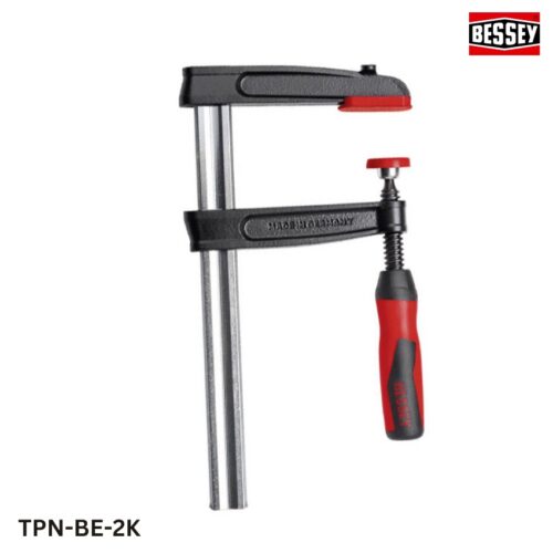 Cảo chữ F BESSEY TPN-BE-2K có thiết kế chắc chắn, tay vặn nhựa 2 thành phần chống trượt, lực kẹp tối đa 5.500N. Phù hợp ứng dụng gá kẹp chi tiết trong lắp ráp kết cấu kim loại, chế tạo cơ khí và hàn chuyên nghiệp. Sản xuất tại Đức.