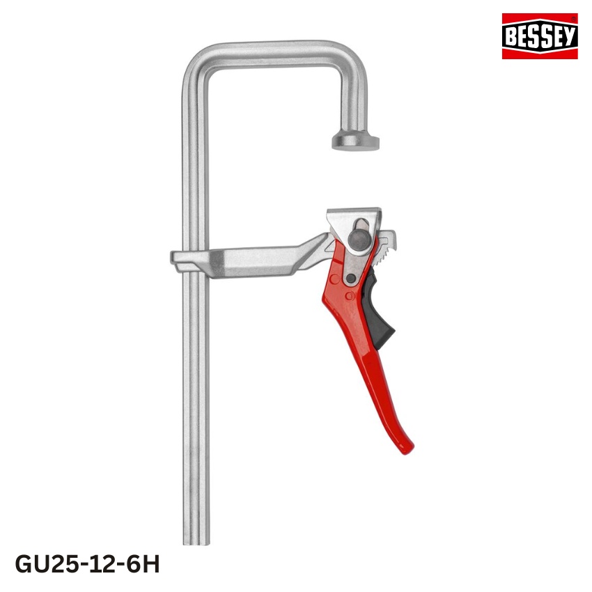 Cảo nhanh BESSEY GU25-12-6H được thiết kế với tay đòn dạng chữ U giúp tăng khả năng tiếp cận ở các vị trí khó, đặc biệt phù hợp với thanh profile dạng T. Tay đòn bọc nhựa công thái học hỗ trợ thao tác thoải mái hơn và giảm thiểu lực tay.