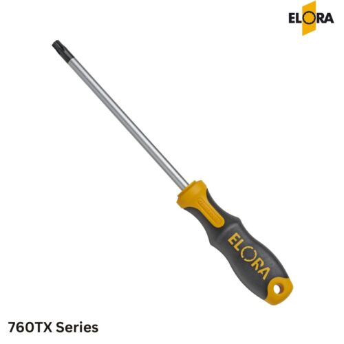 Tuốc nơ vít đầu sao ELORA 760TX là công cụ lý tưởng dành cho các ứng dụng chuyên nghiệp khi làm việc với vít TORX®. Sản xuất tại Đức, sản phẩm có kích thước từ TX3 đến TX40, đáp ứng đa dạng nhu cầu sửa chữa và lắp ráp. Được chế tạo từ thép Chrome-Vanadium ELORA 61CrSiV5 / 1.2243, lưỡi tua vít mạ crôm sáng bóng giúp tăng độ bền và chống gỉ. Tay cầm công thái học QUATROLIT®-2C giảm thiểu trơn trượt, nâng cao độ bám.