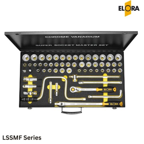 Bộ khẩu Elora LSSMF Series được thiết kế để đáp ứng nhu cầu đa dạng trong các công việc cơ khí và sửa chữa chuyên nghiệp. Với 57 chi tiết, bộ sản phẩm cung cấp đầy đủ các kích cỡ và phụ kiện cần thiết cho nhiều ứng dụng khác nhau.