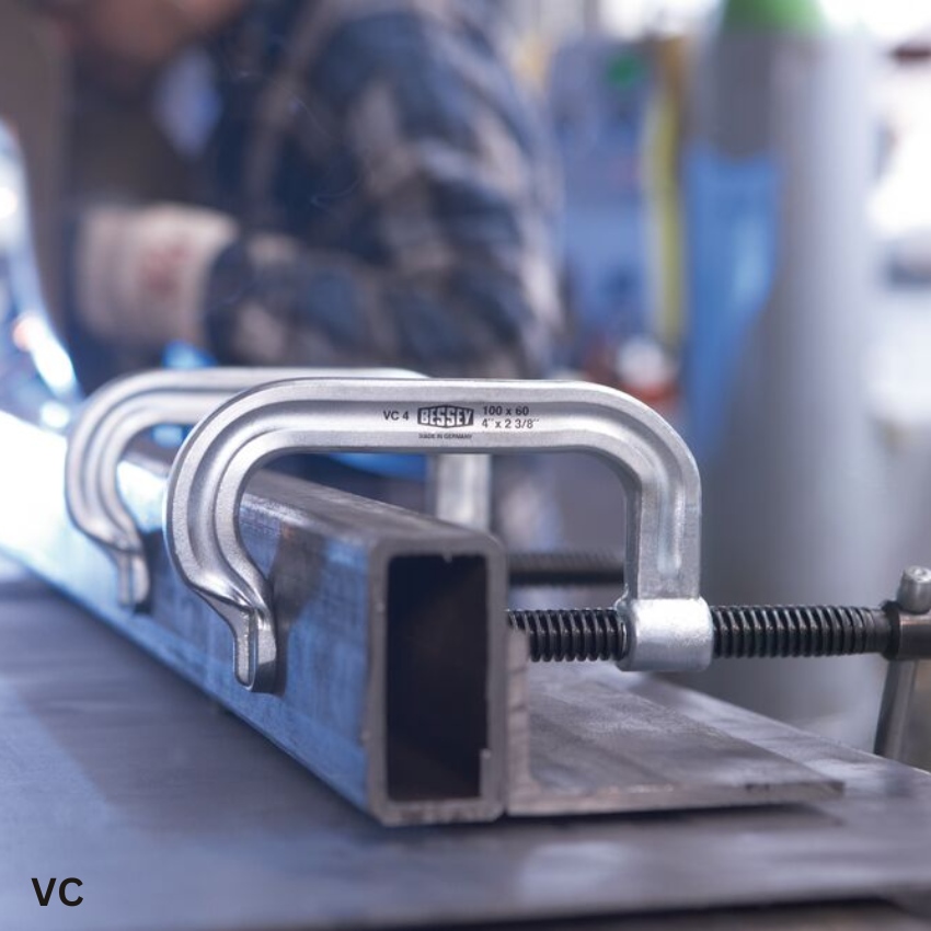 Kẹp chữ C Bessey VC là dòng dụng cụ kẹp chuyên dụng với thiết kế chắc chắn, có khả năng chịu lực cao trong môi trường làm việc khắc nghiệt. Khung kẹp được làm từ thép toàn phần đã được tôi cứng và xử lý bề mặt, đảm bảo khả năng chống gãy, chống cong vênh trong quá trình sử dụng lâu dài.