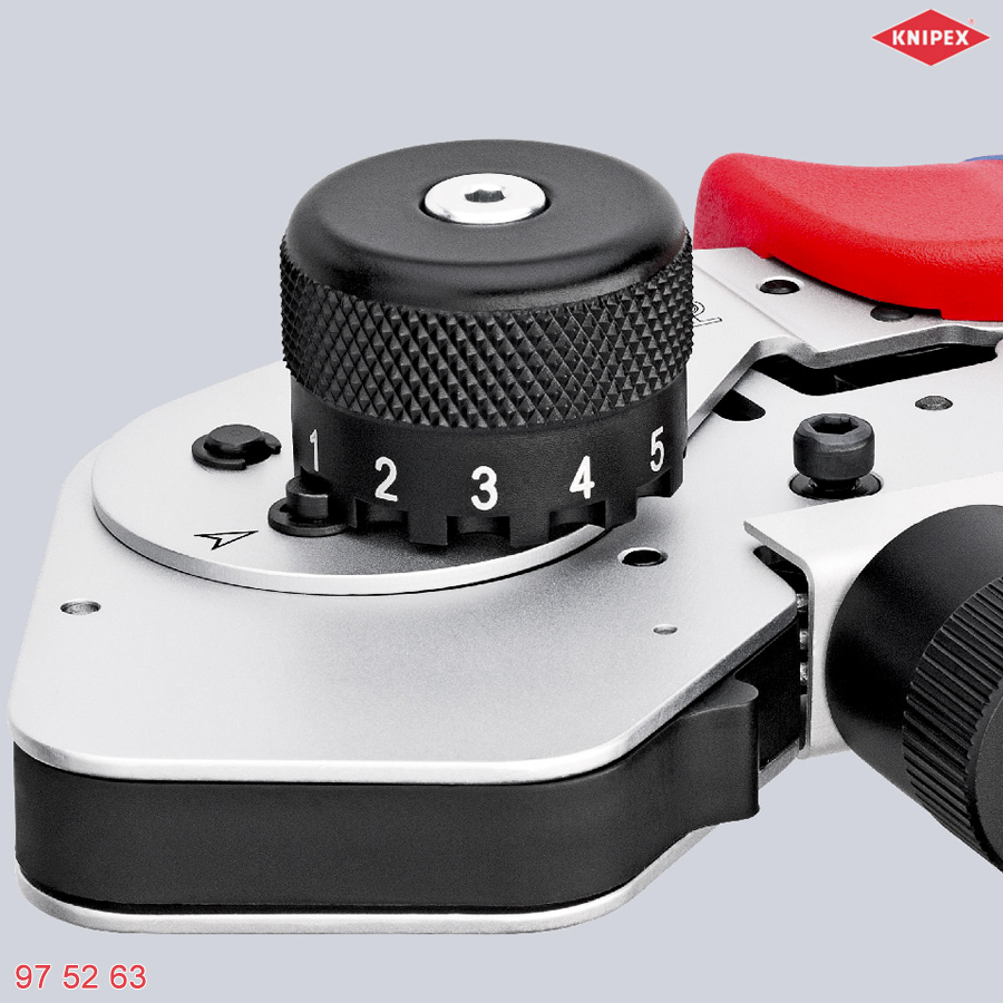 Nhờ kết hợp cơ cấu cóc, 4 chấu và vi chỉnh lực, kìm bấm cos kim Knipex 97 52 63 cho mối bấm lặp lại, đạt chất lượng công nghiệp, phù hợp lắp ráp, dây chuyền sản xuất và bảo trì hiện trường.