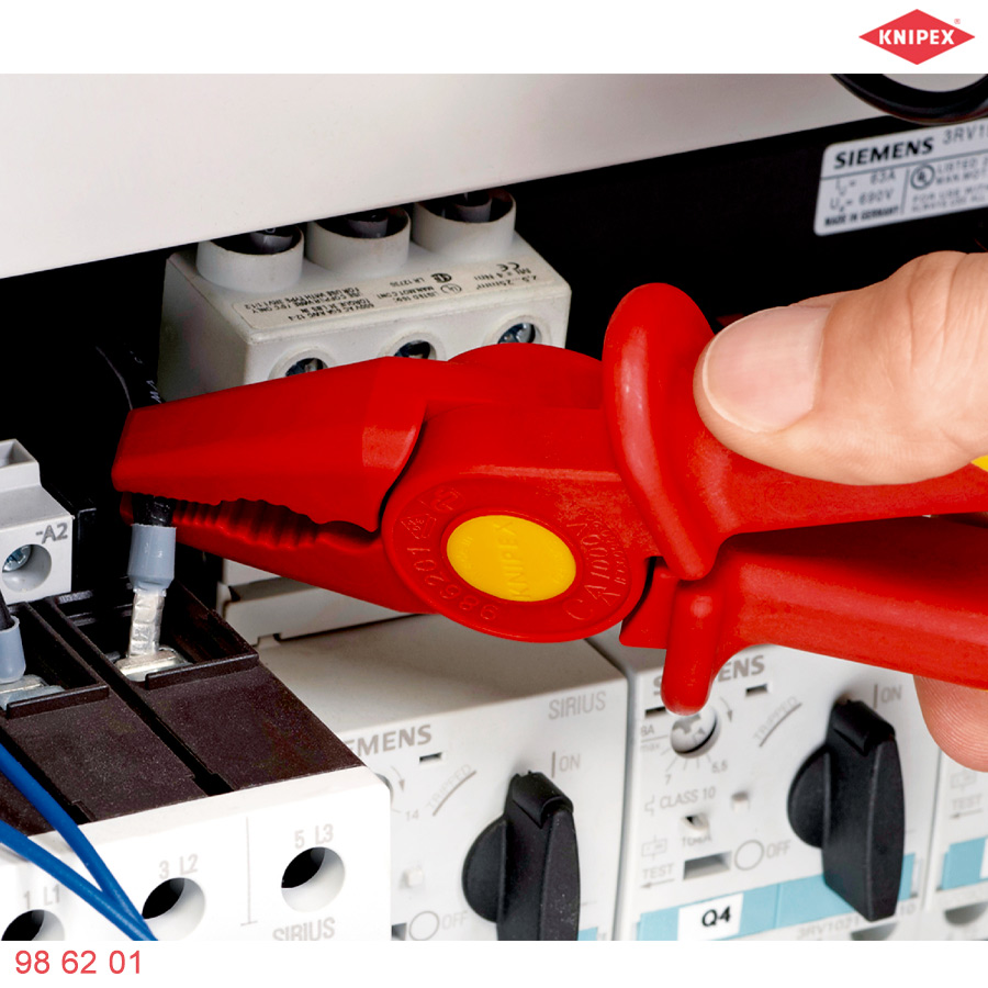Kìm mũi bằng Knipex 98 62 01 được thiết kế chuyên biệt cho các ứng dụng điện cao áp, đáp ứng tiêu chuẩn an toàn và độ bền trong môi trường làm việc khắc nghiệt. Chuẩn Class C