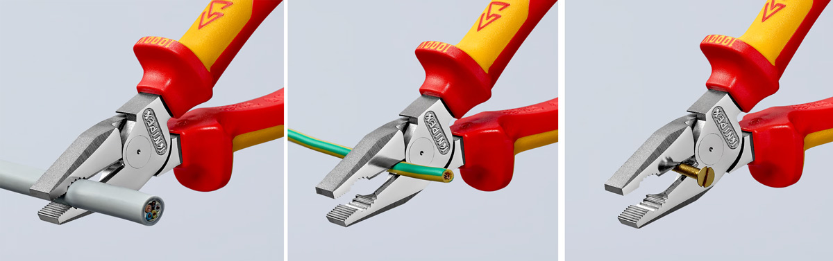 - Kìm đa năng cán cách điện knipex 02 06 200 được thiết kế chuyên biệt cho lắp đặt điện và bảo trì công nghiệp với lực cắt mạnh mẽ và ổn định.