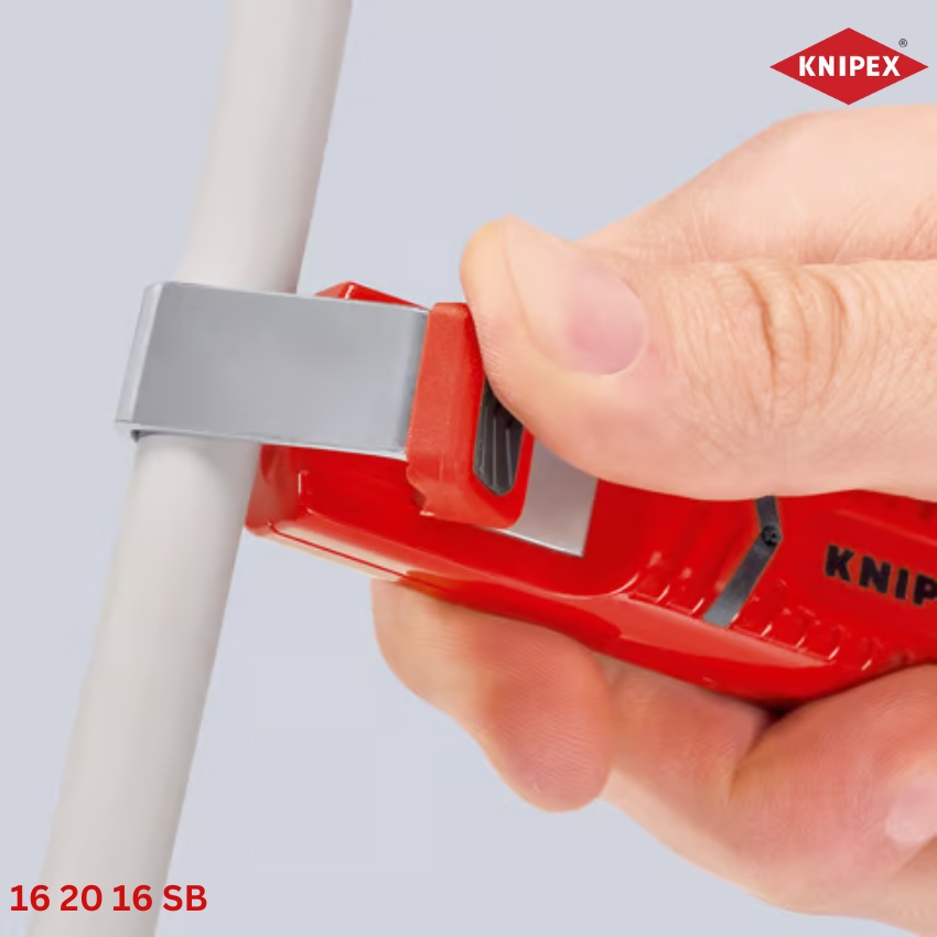 Knipex 16 20 16 SB là dụng cụ tách cáp chuyên nghiệp để loại bỏ lớp cách điện trên các loại cáp tròn thông dụng. Với thiết kế nhỏ gọn, sản phẩm tích hợp lưỡi dao có thể xoay, cho phép thực hiện các đường cắt tròn và dọc chính xác, phù hợp cho các ứng dụng công nghiệp và dân dụng.