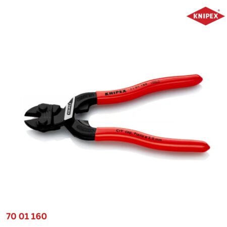 Knipex 71 01 160 Kìm Cắt CoBolt S dài 160 mm. Lưỡi cắt được tôi cảm ứng đạt độ cứng khoảng 64 HRC, thích hợp để cắt bu lông, đinh, rì vê, dây cứng và lò xo kích thước Ø 3 – 5 mm