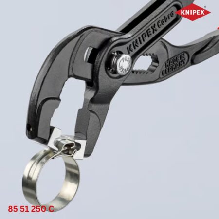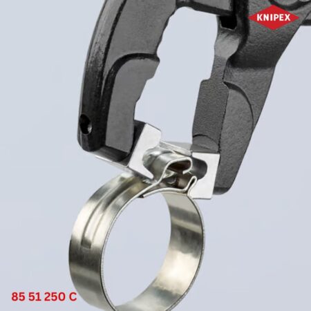 - Knipex 85 51 250 C Kìm Mở Cổ Dê dài 250 mm được thiết kế dễ dàng thao tác với các loại cổ dê Click nhờ hệ thống kẹp xoay đa hướng.