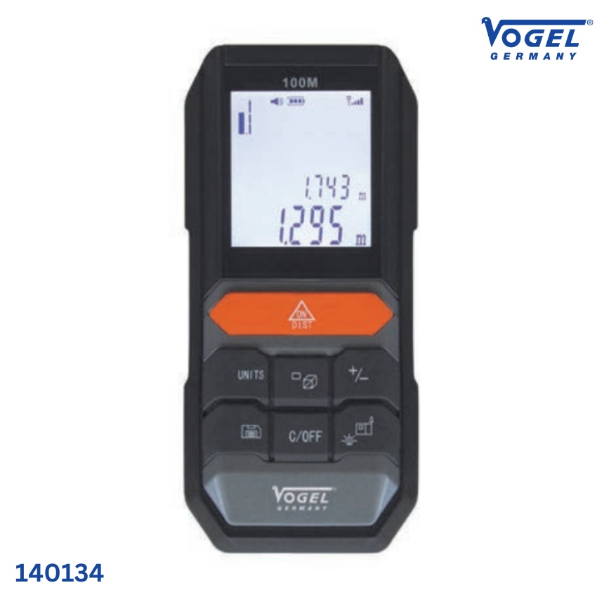 Máy đo khoảng cách Vogel Germany 140134 sử dụng công nghệ laser hiện đại, cho phép đo nhanh và chính xác khoảng cách lên tới 100 m với sai số chỉ ±1 mm. Thiết bị hỗ trợ nhiều chế độ tính toán như diện tích, thể tích, đo gián tiếp theo định lý Pythagoras, đáp ứng đa dạng nhu cầu trong xây dựng, khảo sát và thi công. Màn hình LCD có đèn nền hiển thị rõ ràng, lưu được 20 phép đo, phù hợp sử dụng cả trong môi trường thiếu sáng.