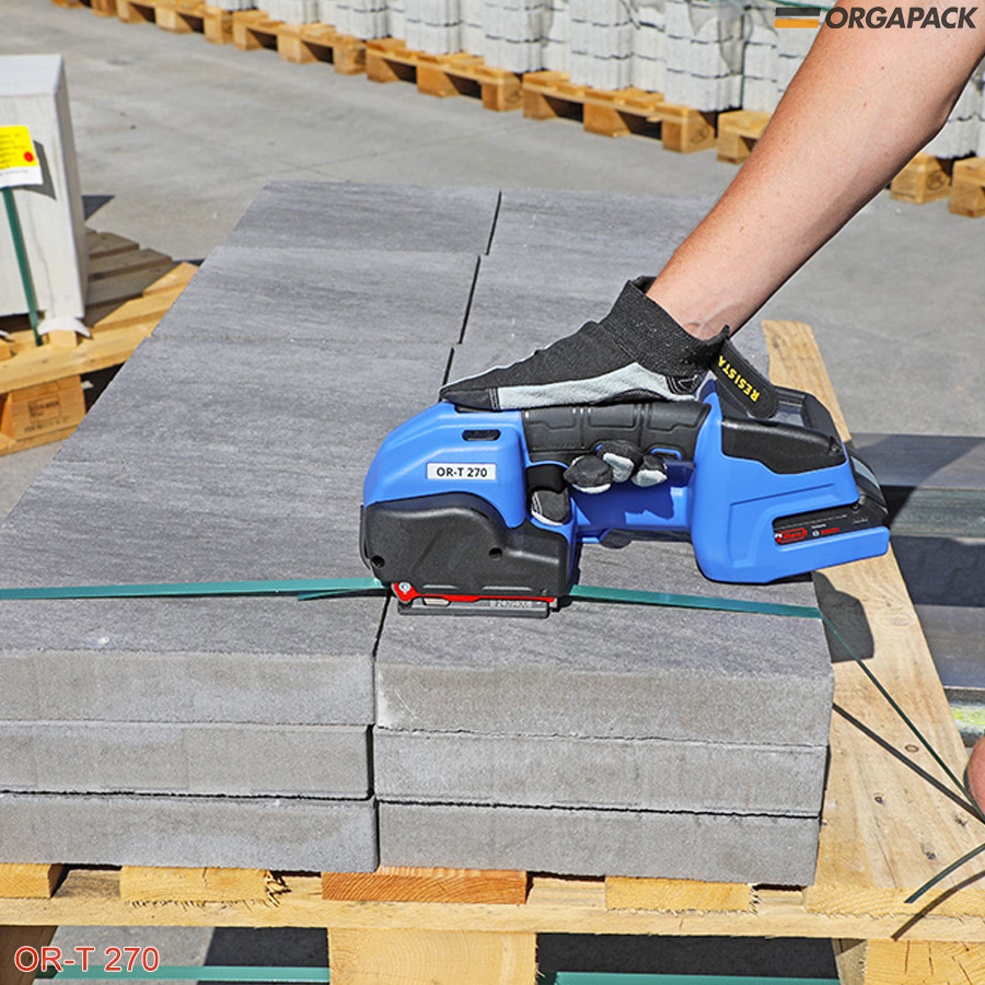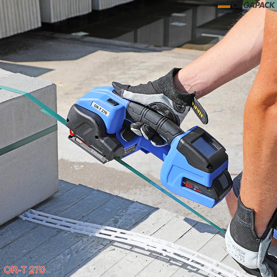 OR-T 270 là máy đóng đai nhựa cầm tay dùng pin dành cho dây đai PET & PP, tương thích chiều rộng 12–16 mm. Thiết kế cân bằng, vận hành ba chế độ (Tự động/Bán tự động/Thủ công), lực siết tới 2.500 N (Standard) hoặc 1.360 N (Soft), trọng lượng 4,0 kg kèm pin. OR-T 270 là phiên bản máy thiết kế thay thế cho ORT 260