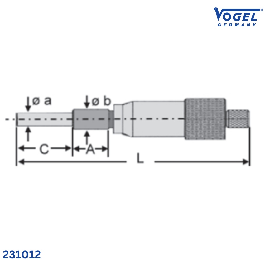 Panme Vogel 231012 có cấu trúc chắc chắn với trục quay cứng vững, ren mài tinh cho chuyển động mượt mà và ổn định. Đầu đo được thiết kế dạng mặt phẳng, gia công mài nhẵn, đảm bảo tiếp xúc chuẩn xác khi đo chiều sâu. Tay cầm bọc nhám giúp cầm nắm chắc chắn, thao tác chính xác ngay cả khi sử dụng lâu dài.