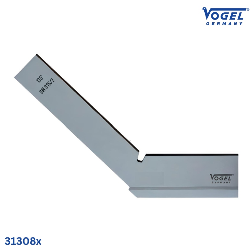 Thước eke kỹ thuật Vogel 31308x là loại thước đo góc nghiêng 135°, làm bằng thép carbon cứng, có đế đỡ mặt phẳng. Thiết kế đạt chuẩn DIN 875 GG II, phù hợp cho công việc đo kiểm cơ khí, căn chỉnh và định vị các chi tiết máy có yêu cầu độ chính xác cao.