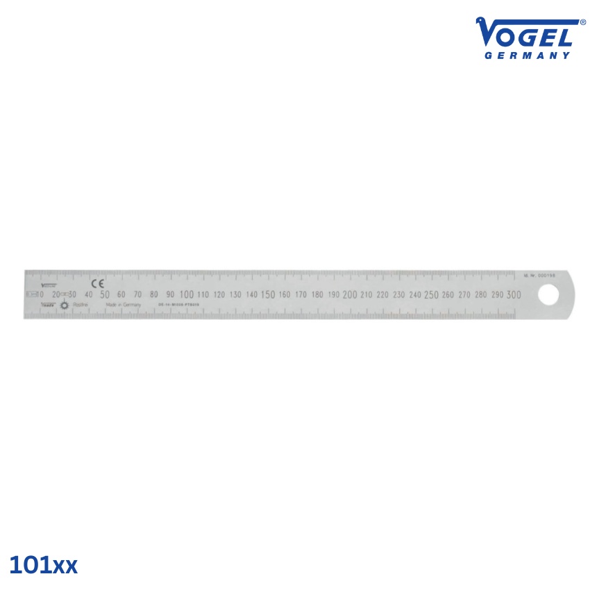 Thước lá inox Vogel 101xx được sản xuất từ thép lò xo không gỉ với bề mặt mờ chống lóa giúp giảm phản xạ ánh sáng, dễ đọc trị số. Vạch chia được khắc laser sâu và liên tục, đảm bảo độ bền và khả năng đọc rõ ràng trong thời gian dài.