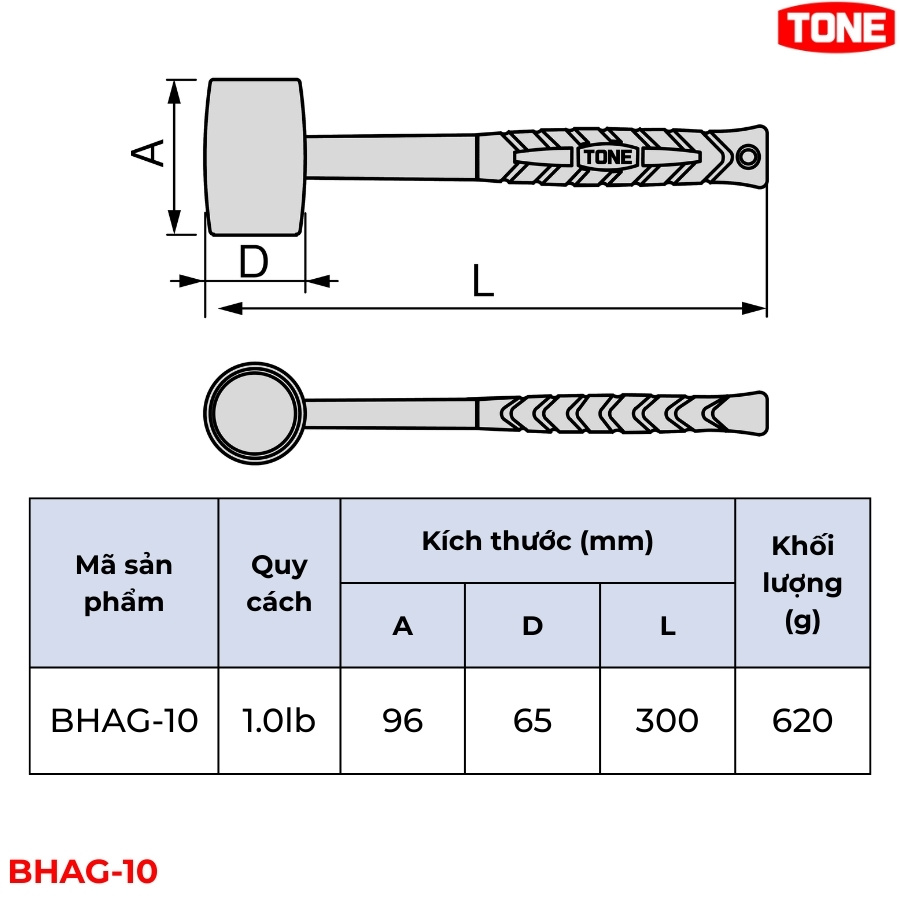TONE BHAG-10 Búa cao su 1.0 lb Thông số búa cao su TONE BHAG-10
