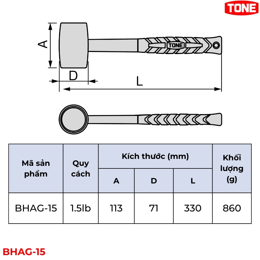 TONE BHAG-15 Búa cao su 1.5 lb