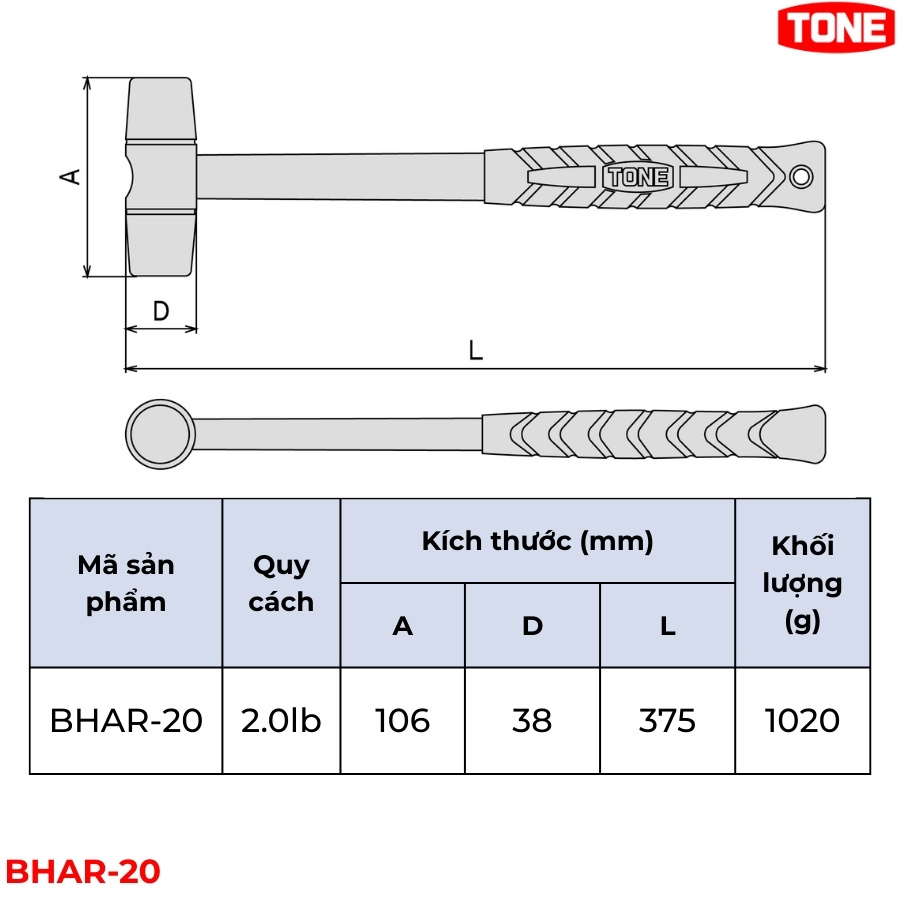TONE BHAR-20 là dòng búa đồng thau (Brass Hammer) chuyên dụng, được thiết kế tối ưu cho các công việc lắp đặt đồ gá và xử lý khuôn mẫu. Đặc tính không phát sinh tia lửa điện khi va chạm giúp dụng cụ này trở thành lựa chọn an toàn hàng đầu tại các khu vực làm việc có nguy cơ cháy nổ. Unicom JSC là nhà phân phối TONE Japan.