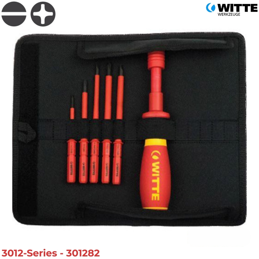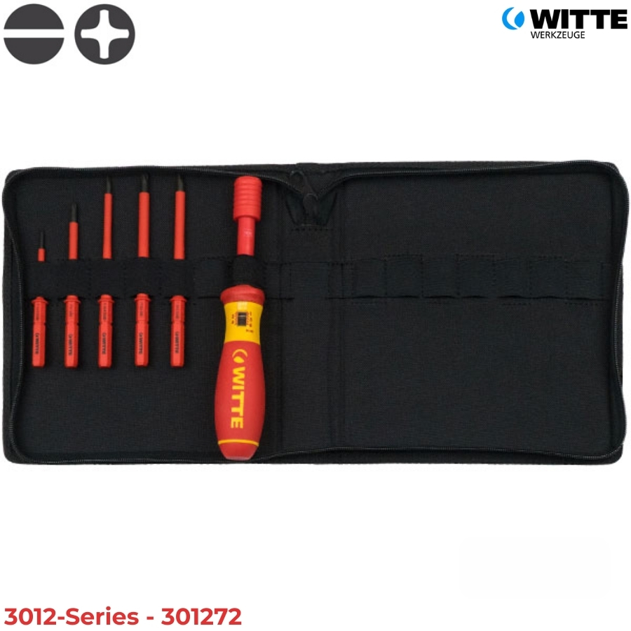 Bộ tua vít cân chỉnh lực cách điện WITTE 3012-Series là giải pháp kiểm soát lực siết (Torque) chuyên dụng thuộc dòng PRO BITDRIVE® VDE từ Đức. Với cơ chế tự động giải phóng lực khi đạt ngưỡng định sẵn, sản phẩm giúp bảo vệ các mối nối điện và linh kiện nhạy cảm khỏi tình trạng siết quá lực, đảm bảo an toàn tuyệt đối 1000V cho kỹ sư vận hành. Series bao gồm 2 model: 301272 và 301282.